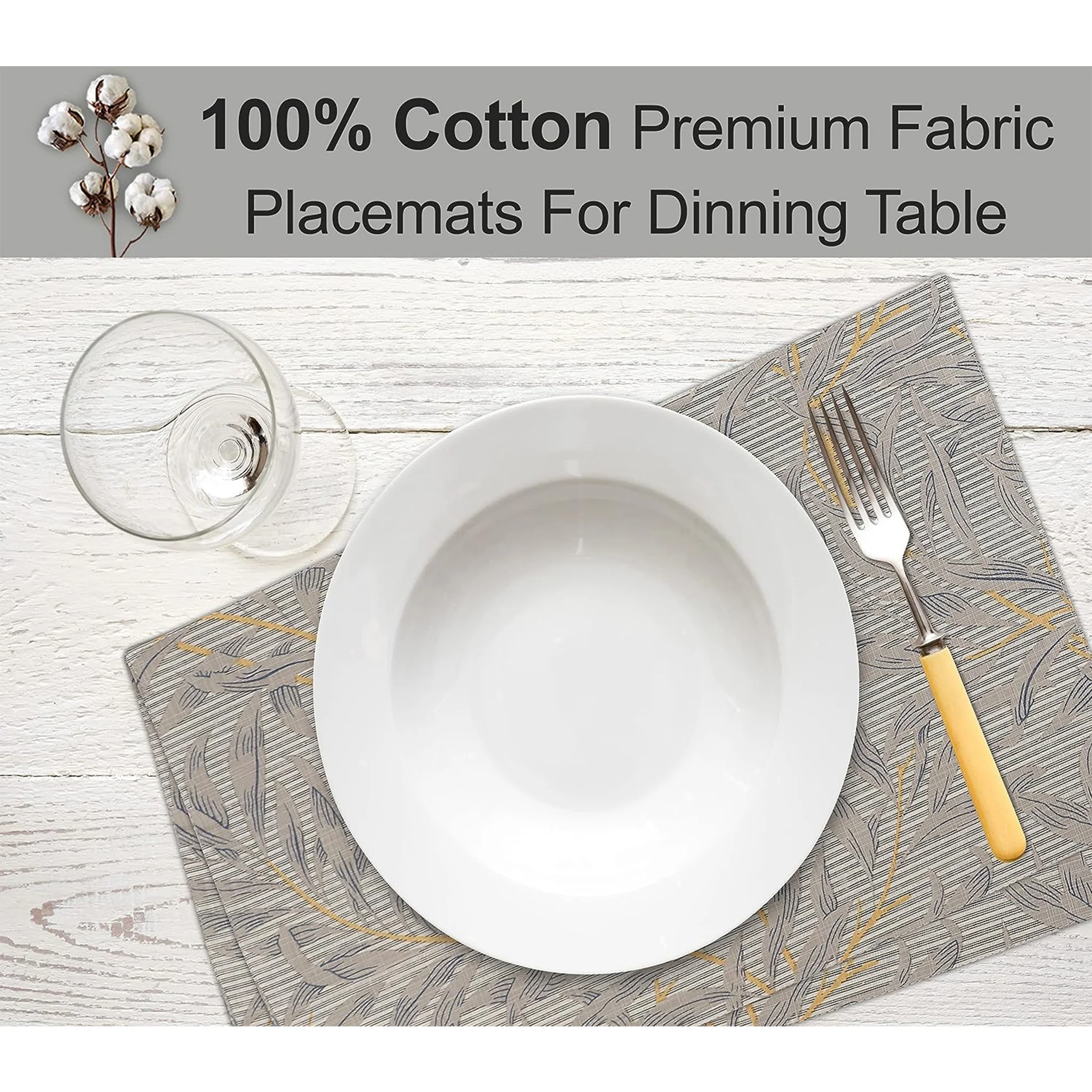 Premium Material:Â Table Mats Set of 6 is made with Top Quality 100% Cotton Duck Weave Fabric. Fabric is Soft, Wrinkle & Shrink-Resistant, and Perfect to Protect the Table from Stains & Scratches.