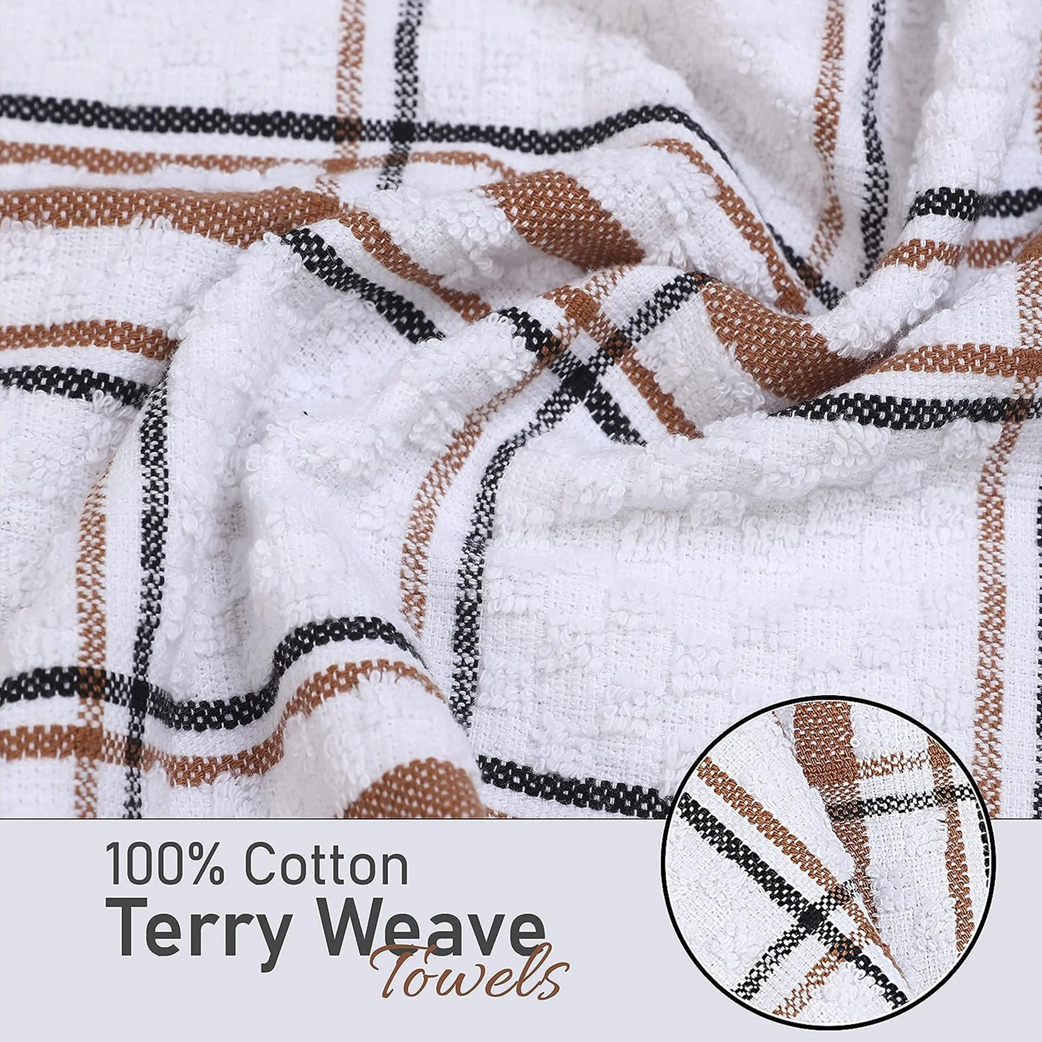 Super Absorbent & Quick Drying Fabrication: -- Constructed with Top Notch Quality 100% Cotton Terry Weave Cloth which is Soft, Ultra Absorbent, Lint Free, and Quick in Drying. Perfect for drying hands, wiping stains, drying dishes and keeping surfaces clean.