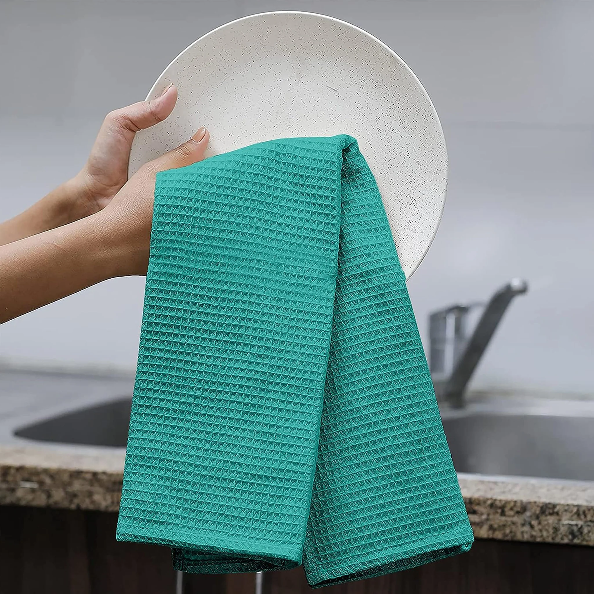 100% Cotton Kitchen & Dish Towel by Ruvanti - (15 Inch x 25 Inch) - Teal (Waffle Weave)