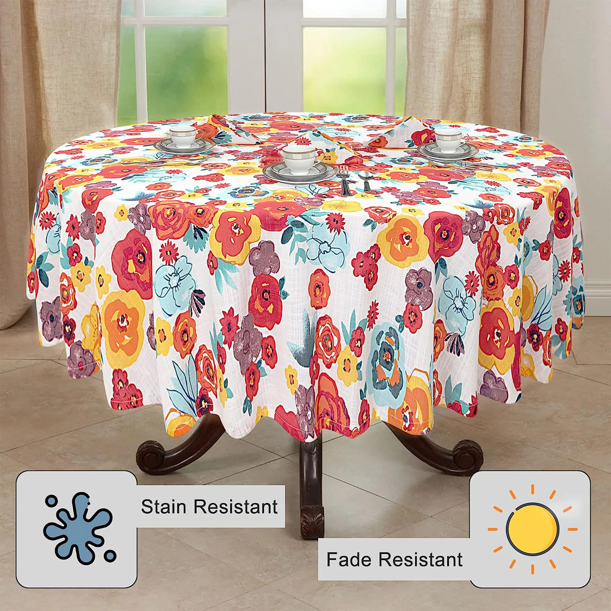 100% Cotton Table Cover Wrinkle Free by Ruvanti (Multi Flower)