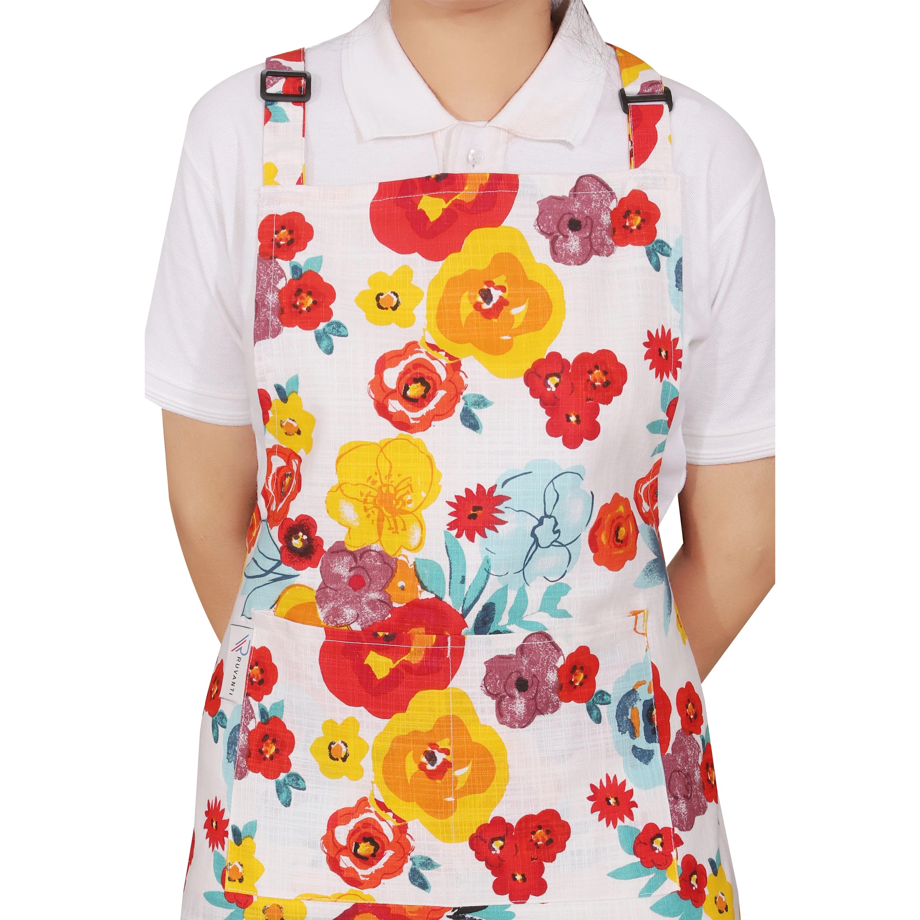 Cotton Enrich Cute Aprons for Women with Pockets by Ruvanti (Multi Flower)