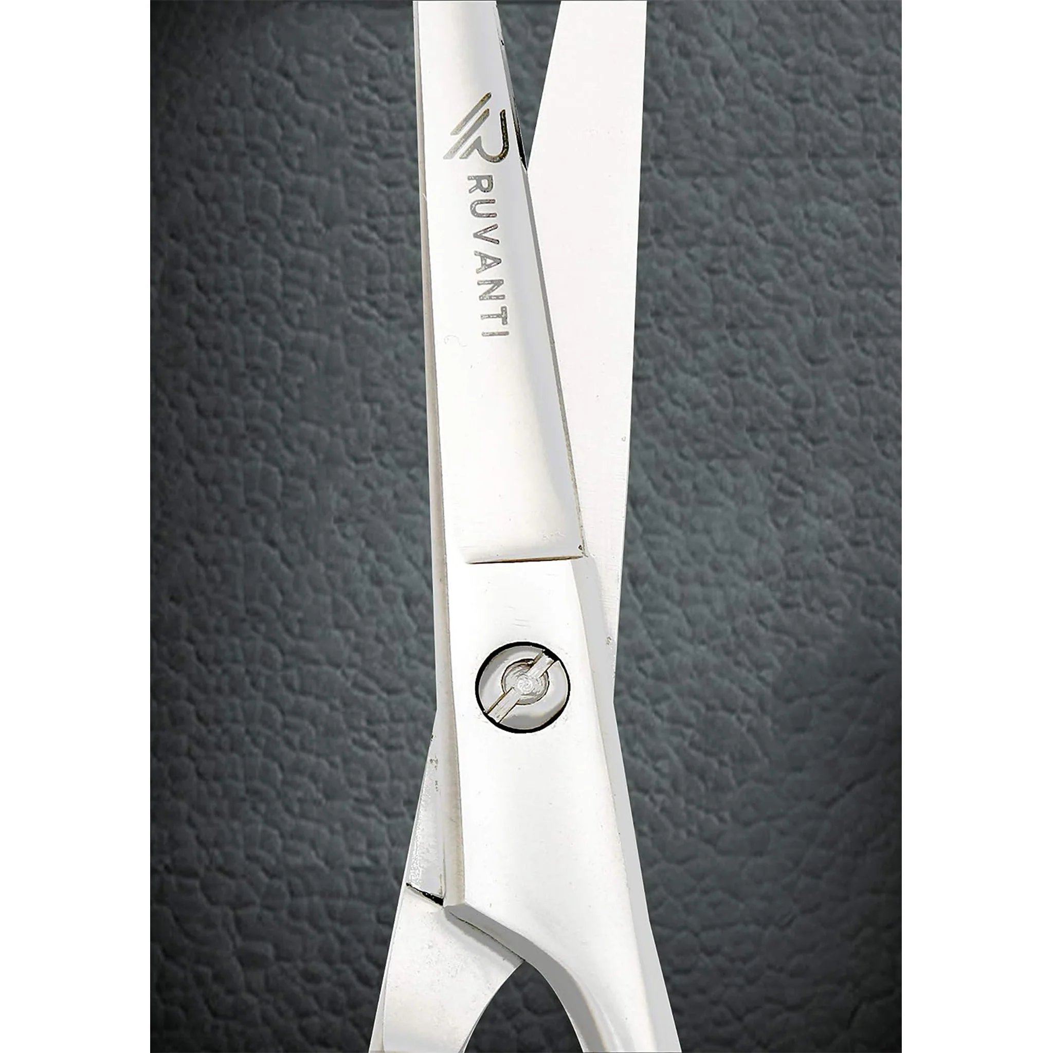 Ergonomic Anti-Skid Design: RUVANTI's Professional Hair Scissors are prepared with an ergonomic anti-skidding design, providing comfort and stability during use. The sharp yet safe blades are carefully crafted to deliver a professional haircut every time.