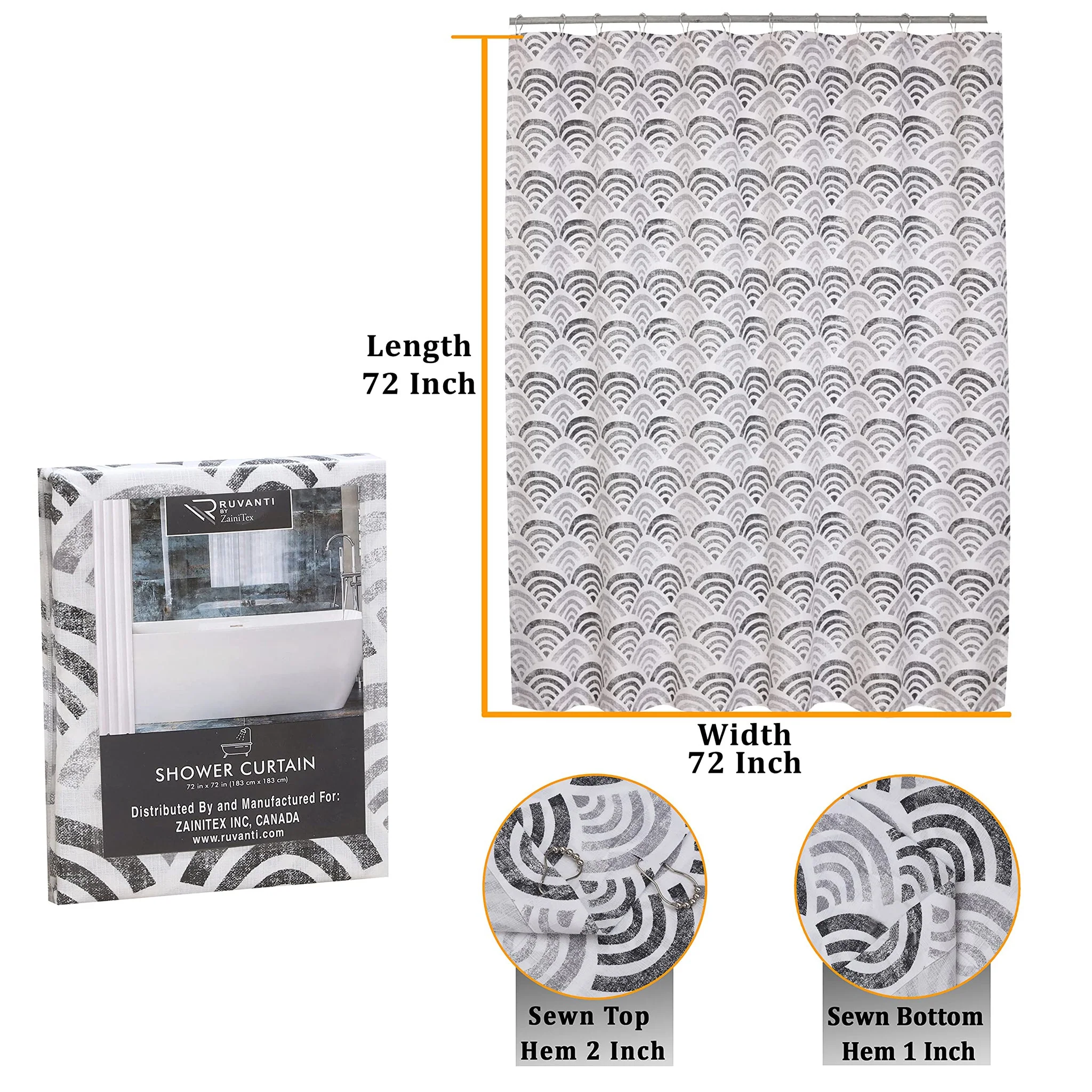 Ruvanti Shower Curtains are made with superior quality Cotton Blend Fabric which include 60% Cotton & 40% Polyester. These have Elegant & Modern Design and Expertly Stitched All around Hem, Button Holes on Bathroom Curtains Shower Set for Hooks Which Makes It Long Lasting and More Durable. Extra Long Shower Curtains Are Standard Size 72 Inches Wide & 72 Inches Long and are best for top-to-bottom & side-to-side coverage of your shower unit, Bath Tube. It has 12 Button Holes for hanging on top hem of Shower Curtain over Curtain Rod. The fabric shower curtain enhances perfect privacy and decorative appearance look to your bathroom. These Cloth Shower Curtains are excellent choice for farmhouse shower curtain, use at home bathroom curtain, apartment, condo, hotel, camper, dorm room, athletic club, dorm showers, gym and everywhere else you need a reliable cute shower curtains / Cloth Shower Curtain. Our Bathroom Shower Curtains contains 12 Button Holes & hooks which helps to make is more easy in installation and remove for washing. These Clear Shower Curtain are machine washable Cotton Blend material that makes it convenient for using through next round in a short time.